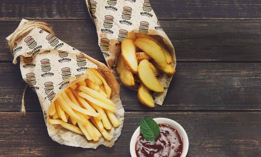 Folhas à prova de gordura: Um item essencial para qualquer barraca de comida de rua. Projetado para ser resistente e durável. Quer você embrulhe hambúrgueres, batatas fritas ou forre uma caixa de comida para peixe, as folhas de papel biodegradável e compostável à prova de gordura impressas e personalizadas são uma solução simples e econômica. Podem ser confeccionadas com tintas vegetais não tóxicas, à prova de congelamento, de forno e também de micro-ondas. Ideal para qualquer barraca de comida, restaurante fast food, padaria, cafeteria, pub e entre outros estabelecimentos.