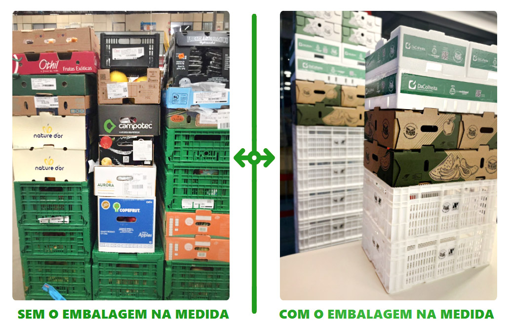 O maior benefício do programa EMBALAGEM NA MEDIDA é preservar a qualidade do produto e facilitar a movimentação de carga. Dentro da Ceagesp são movimentamos 230 milhões de embalagens por ano em diferentes materiais de isopor, plástico e papelão. As perdas de FLV (frutas, legumes e verduras) pela má qualidade da embalagem gera anualmente prejuízos enormes para toda a cadeia de abastecimento.