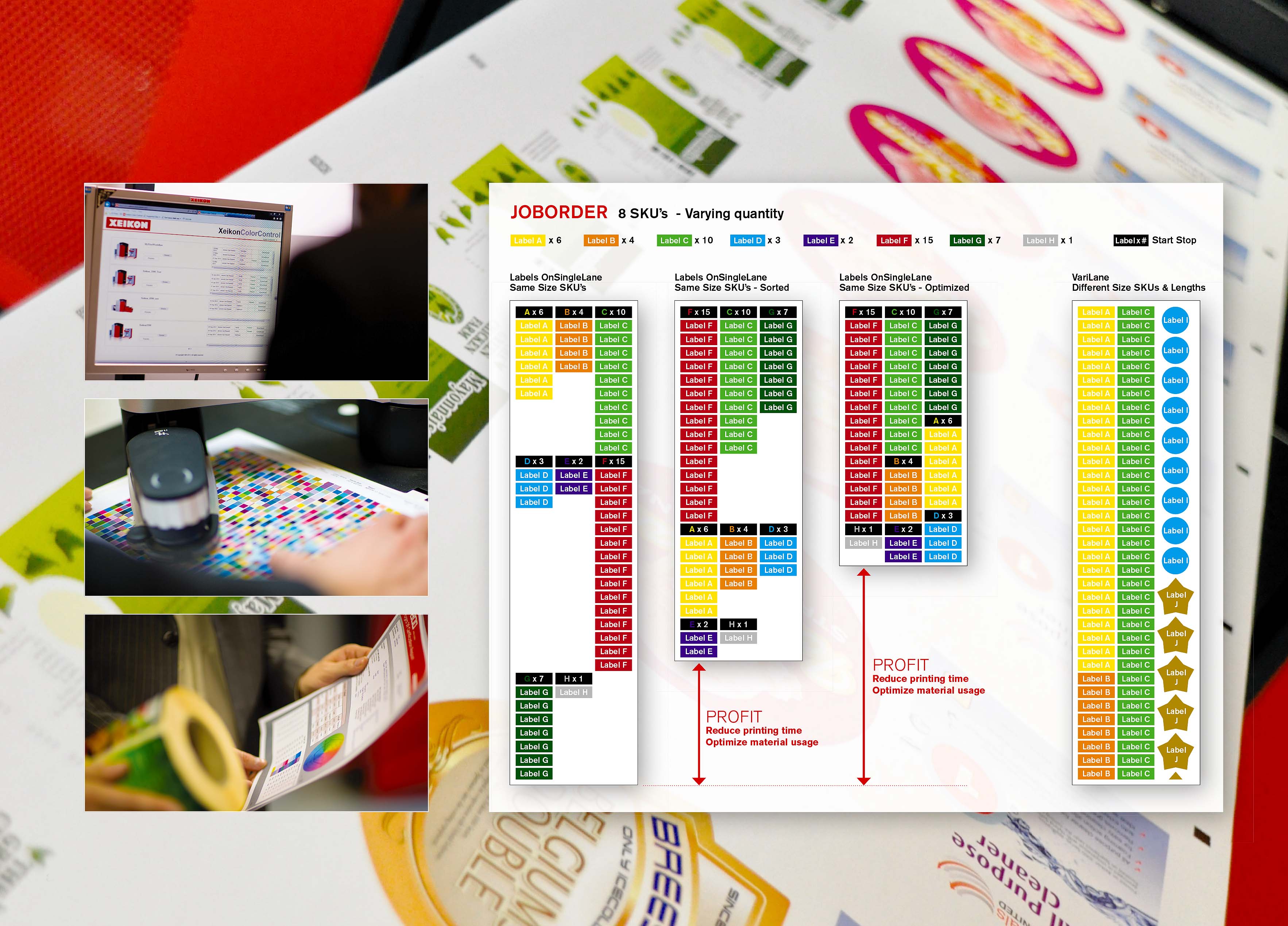 O tempo do processo de configuração da digital da Xeikon é ZERO, não existem chapas ou configurações das mesmas, minimizando desperdícios, o resultado é: uma grande economia significativa dos custos, e também ecologicamente correto! A impressão digital na Xeikon sob demanda também reduz o desperdício e o excesso de estoques em toda a cadeia de suprimentos, permitindo que você ofereça aos seus clientes soluções mais sustentáveis. Crie novas oportunidades de alto valor agregado com as impressoras digitais Xeikon!